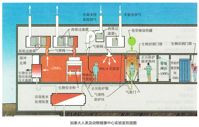 1.建筑布局和裝修方案:是生物安全實驗室安全運行的基礎(chǔ)。由于微生物病菌的危險性,必須防止危險性微生物向外界擴散,全面地阻斷危險性微生物與外部環(huán)境的接觸途徑,同時避免微生物受外界污染,影響實驗結(jié)果的準(zhǔn)確性,必須采取合理的實驗室布局和裝修方案。實驗室布局按照安全要求合理地劃分成清潔區(qū)、半污染區(qū)和污染區(qū),采用人與物分別設(shè)置專用通道,設(shè)置必要的緩沖間,采用一次隔離和二次隔離等措施,能有效的避免交叉污染,從根本上防止危險性微生物的擴散;實驗室裝修采用可靠的材料,合理的施工措施,保證生物安全實驗室始終處于相對密封的環(huán)境,防止微生物的外逸,易于實驗室的清潔消毒,同時避免外部對實驗室環(huán)境的破壞。