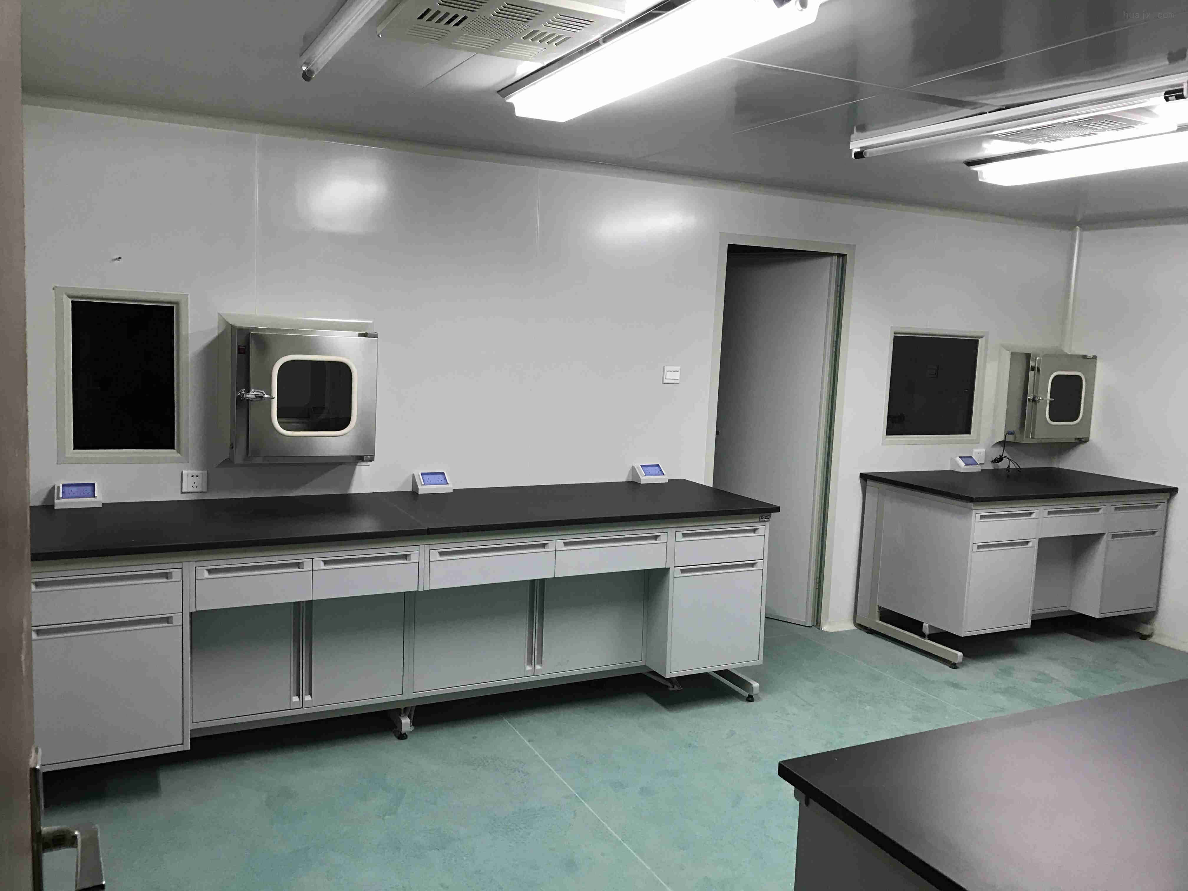 (5)實驗室房間:建筑層高3.5~4.0m,內(nèi)部凈高2.5~2.6m,技術(shù)夾層1.2-1.5m,開間3.2-4.0m,實驗室在面積要求可滿足檢測工作需要為原則,過大不僅浪費,而且會增加氣流組織的困難。